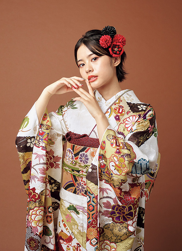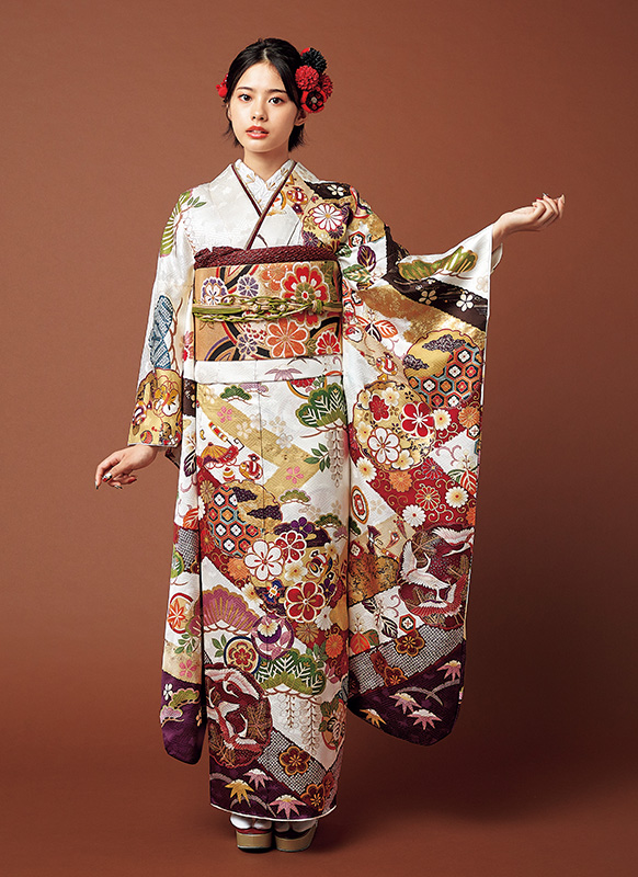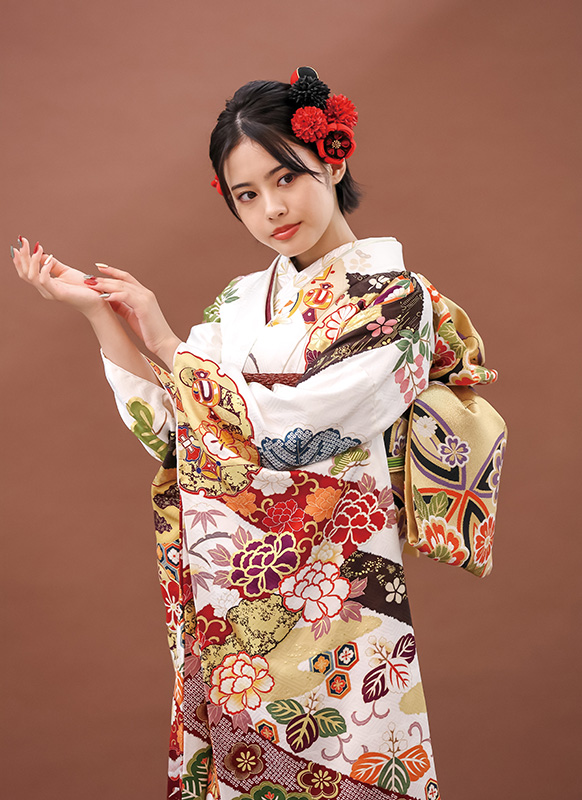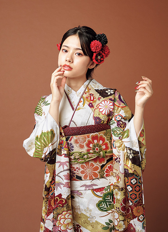 - 写真のコーディネート(帯・帯締め・帯揚げ・重ね襟・半襟・履物・バッグ・ショール等の振袖小物類及び髪飾り・アクセサリー類)は撮影用で、実際のセット内容とは異なります。またコーディネイトの内容により価格が変動する場合がございます。