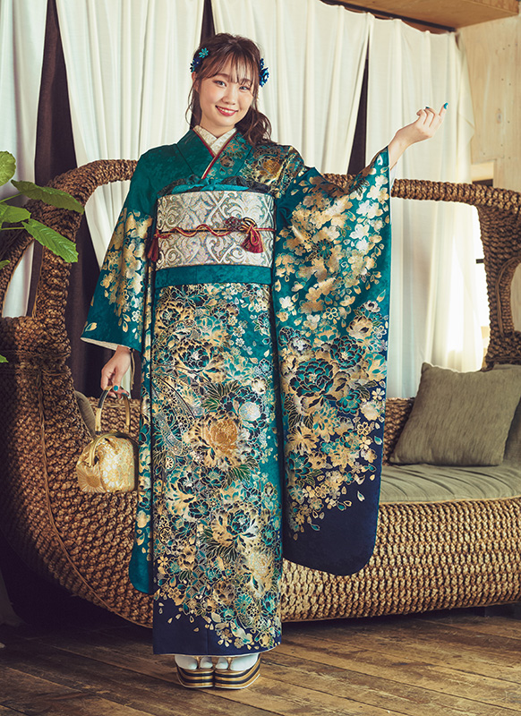 - 写真のコーディネート(帯・帯締め・帯揚げ・重ね襟・半襟・履物・バッグ・ショール等の振袖小物類及び髪飾り・アクセサリー類)は撮影用で、実際のセット内容とは異なります。またコーディネイトの内容により価格が変動する場合がございます。