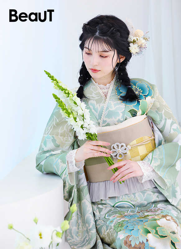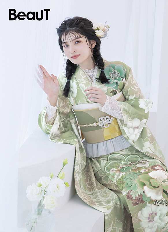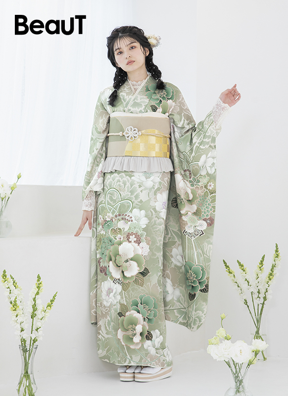 - 写真のコーディネート(帯・帯締め・帯揚げ・重ね襟・半襟・履物・バッグ・ショール等の振袖小物類及び髪飾り・アクセサリー類)は撮影用で、実際のセット内容とは異なります。またコーディネイトの内容により価格が変動する場合がございます。