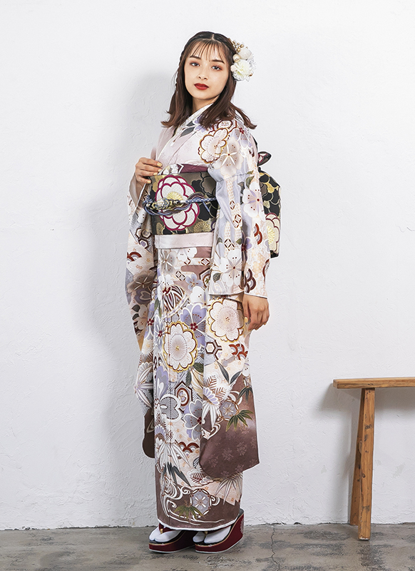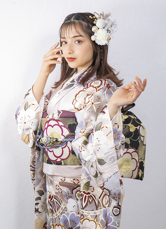 - 写真のコーディネート(帯・帯締め・帯揚げ・重ね襟・半襟・履物・バッグ・ショール等の振袖小物類及び髪飾り・アクセサリー類)は撮影用で、実際のセット内容とは異なります。またコーディネイトの内容により価格が変動する場合がございます。