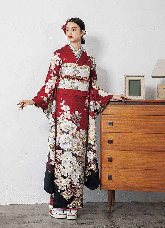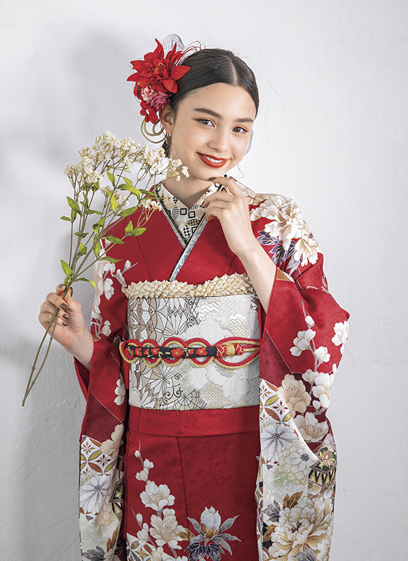 - 写真のコーディネート(帯・帯締め・帯揚げ・重ね襟・半襟・履物・バッグ・ショール等の振袖小物類及び髪飾り・アクセサリー類)は撮影用で、実際のセット内容とは異なります。またコーディネイトの内容により価格が変動する場合がございます。