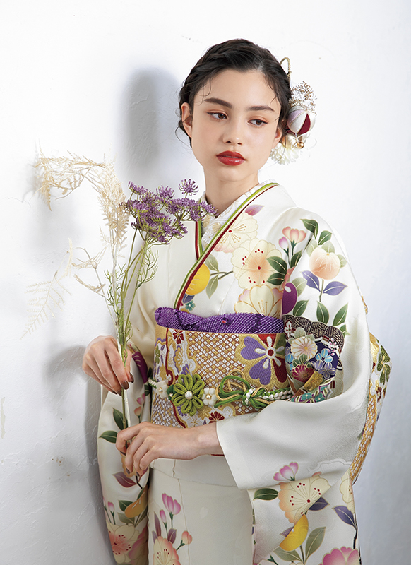 - 写真のコーディネート(帯・帯締め・帯揚げ・重ね襟・半襟・履物・バッグ・ショール等の振袖小物類及び髪飾り・アクセサリー類)は撮影用で、実際のセット内容とは異なります。またコーディネイトの内容により価格が変動する場合がございます。