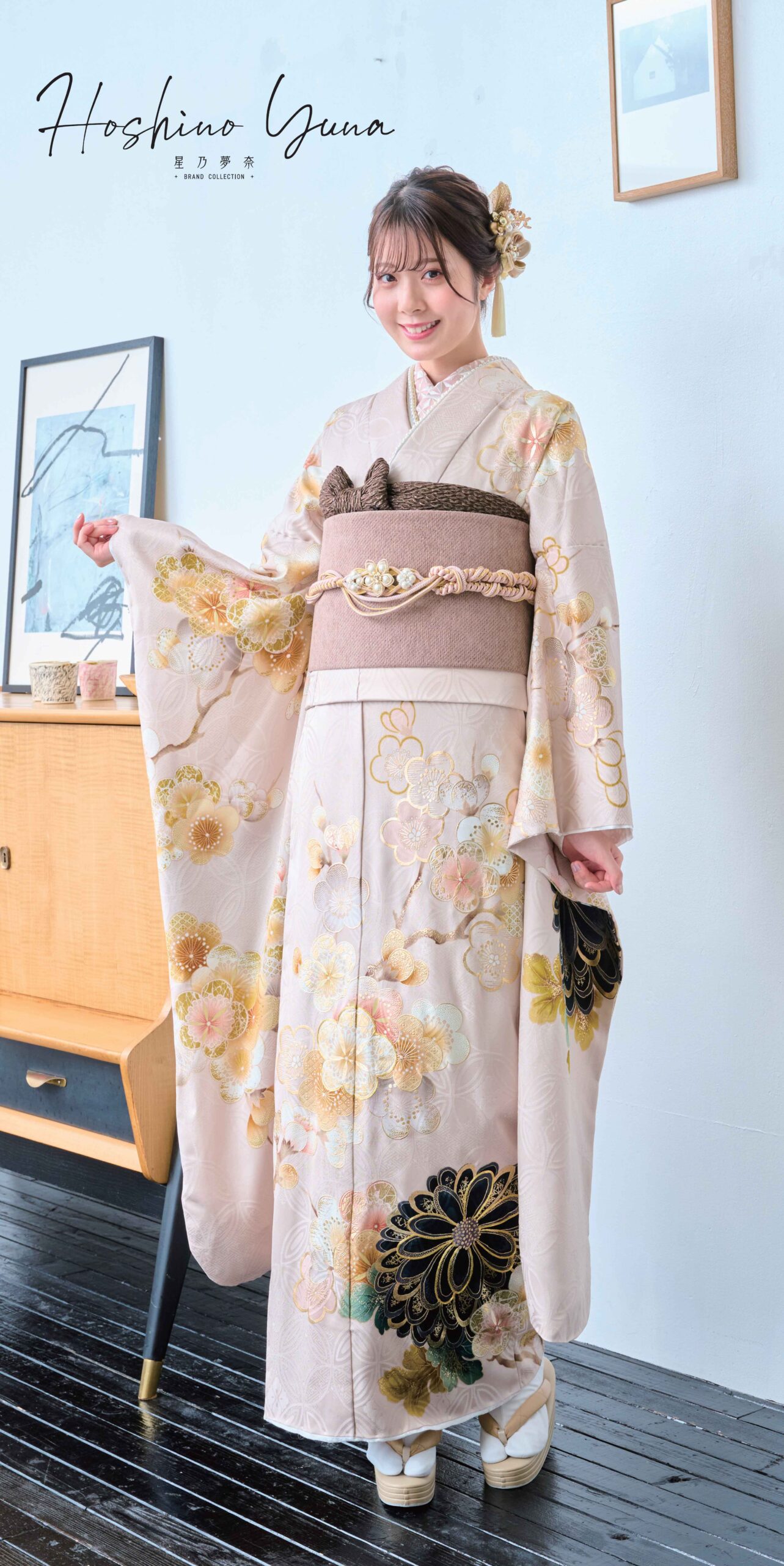 - 写真のコーディネート(帯・帯締め・帯揚げ・重ね襟・半襟・履物・バッグ・ショール等の振袖小物類及び髪飾り・アクセサリー類)は撮影用で、実際のセット内容とは異なります。またコーディネイトの内容により価格が変動する場合がございます。