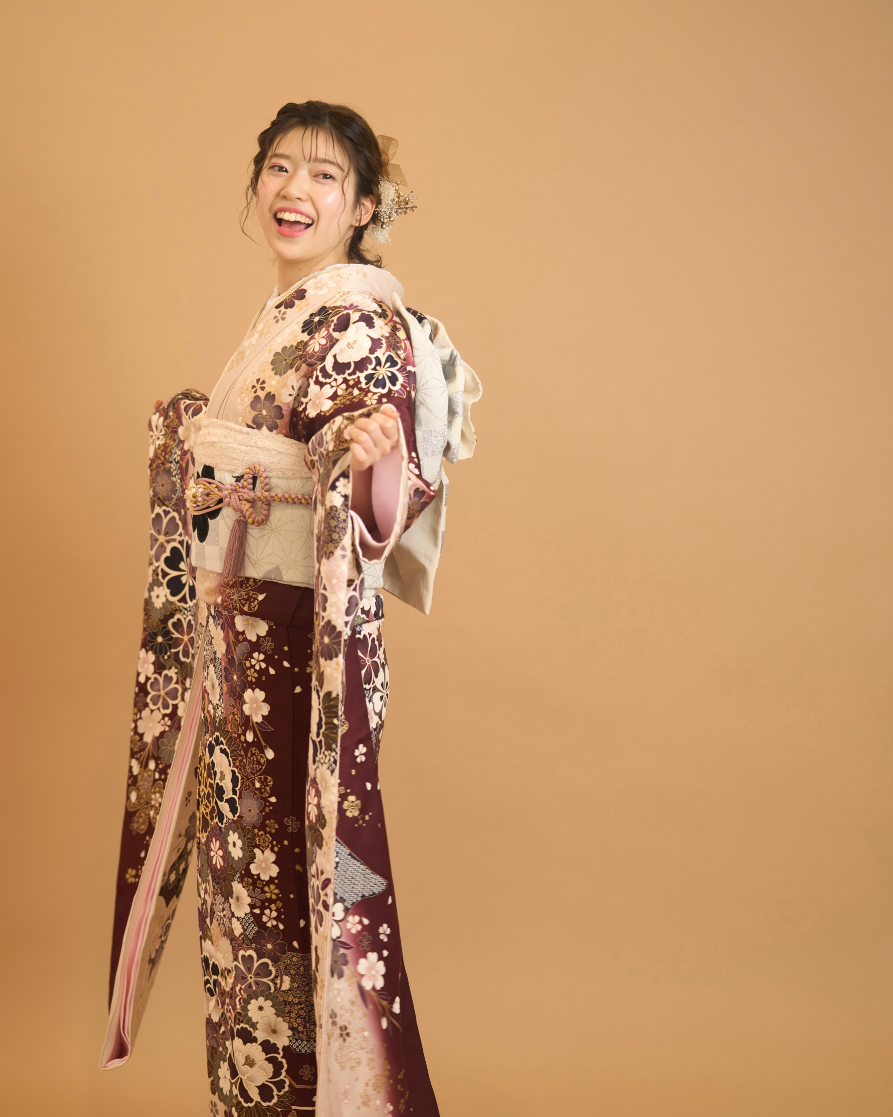 - 写真のコーディネート(帯・帯締め・帯揚げ・重ね襟・半襟・履物・バッグ・ショール等の振袖小物類及び髪飾り・アクセサリー類)は撮影用で、実際のセット内容とは異なります。またコーディネイトの内容により価格が変動する場合がございます。