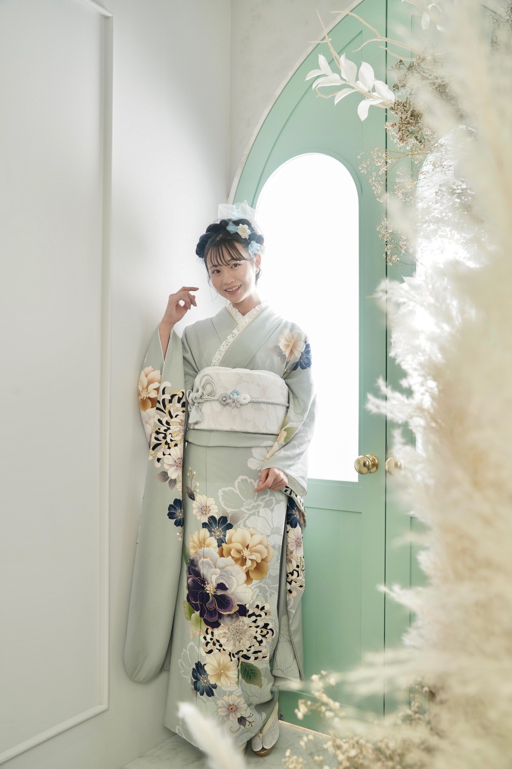 - 写真のコーディネート(帯・帯締め・帯揚げ・重ね襟・半襟・履物・バッグ・ショール等の振袖小物類及び髪飾り・アクセサリー類)は撮影用で、実際のセット内容とは異なります。またコーディネイトの内容により価格が変動する場合がございます。