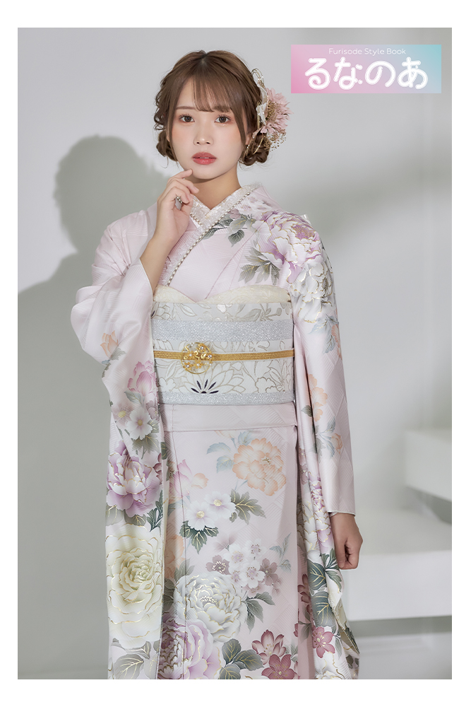 - 写真のコーディネート(帯・帯締め・帯揚げ・重ね襟・半襟・履物・バッグ・ショール等の振袖小物類及び髪飾り・アクセサリー類)は撮影用で、実際のセット内容とは異なります。またコーディネイトの内容により価格が変動する場合がございます。