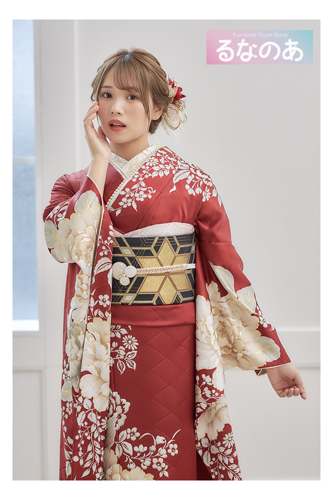 - 写真のコーディネート(帯・帯締め・帯揚げ・重ね襟・半襟・履物・バッグ・ショール等の振袖小物類及び髪飾り・アクセサリー類)は撮影用で、実際のセット内容とは異なります。またコーディネイトの内容により価格が変動する場合がございます。