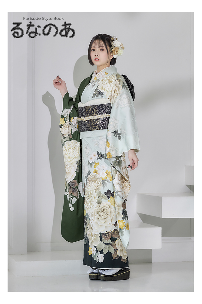 - 写真のコーディネート(帯・帯締め・帯揚げ・重ね襟・半襟・履物・バッグ・ショール等の振袖小物類及び髪飾り・アクセサリー類)は撮影用で、実際のセット内容とは異なります。またコーディネイトの内容により価格が変動する場合がございます。